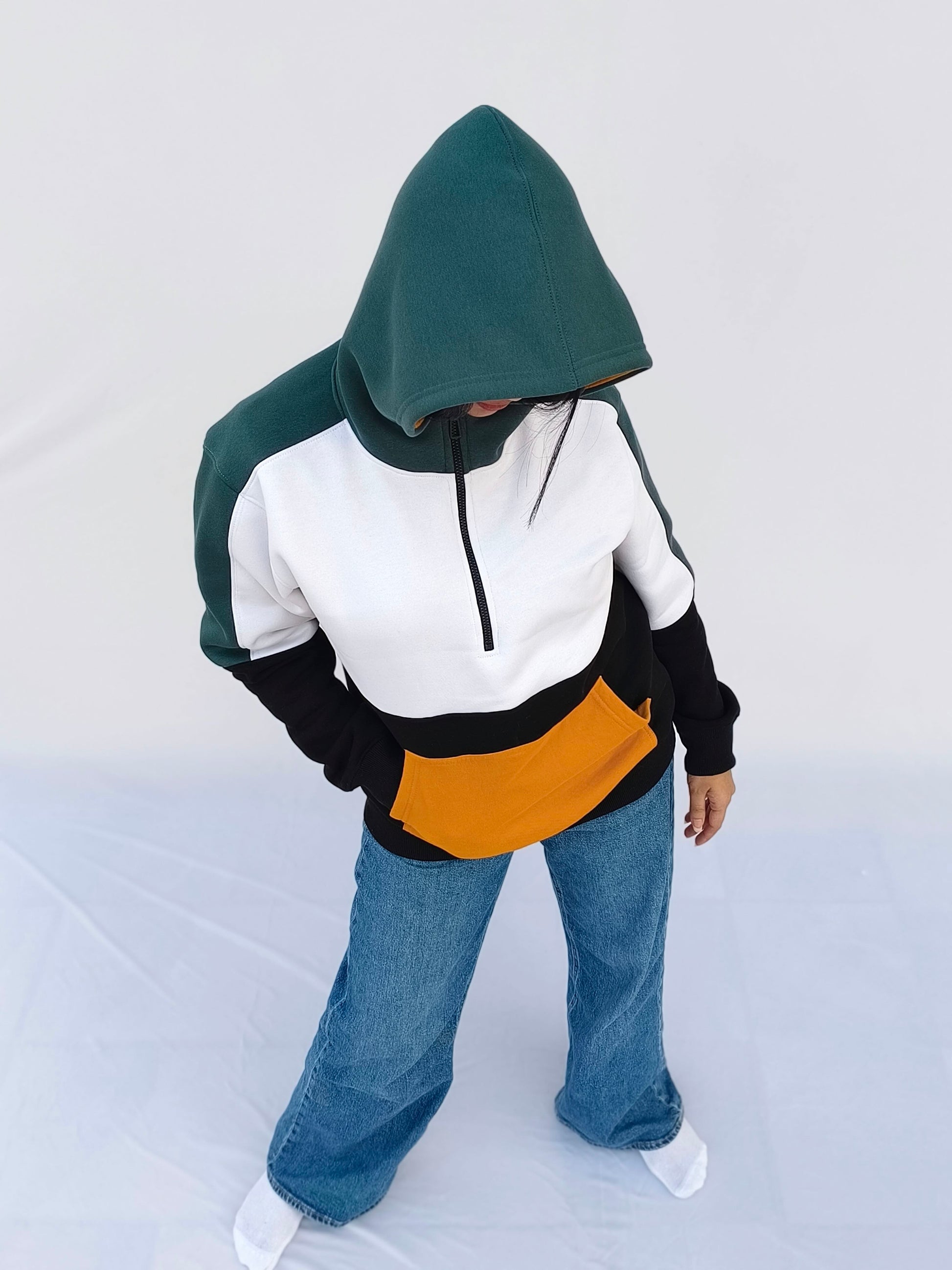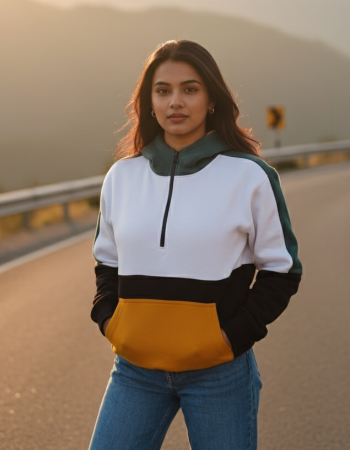 Boyfriend Hoodie for Women - Colour Block Fleeced Hoodie