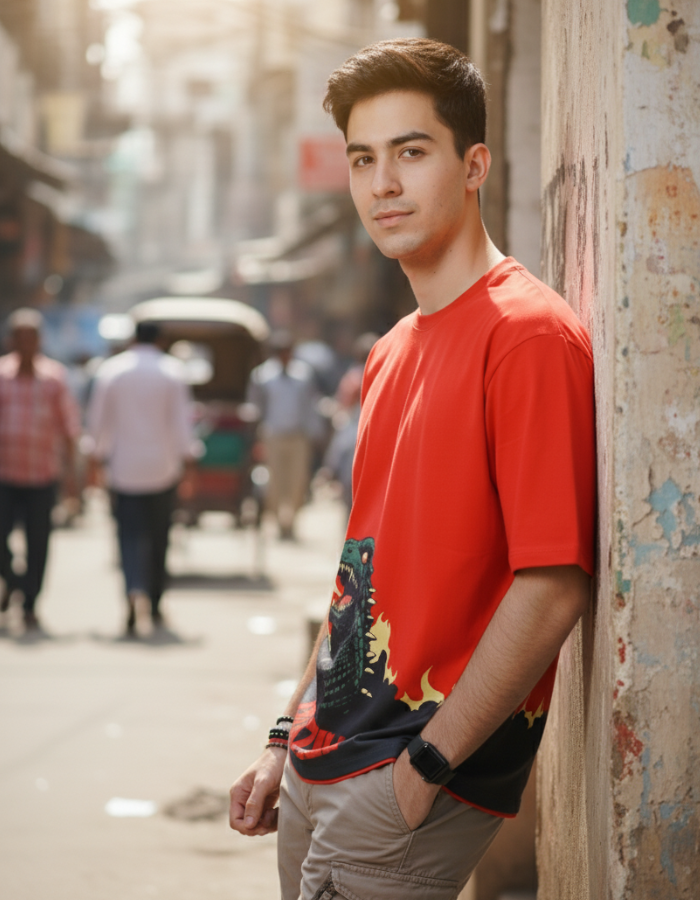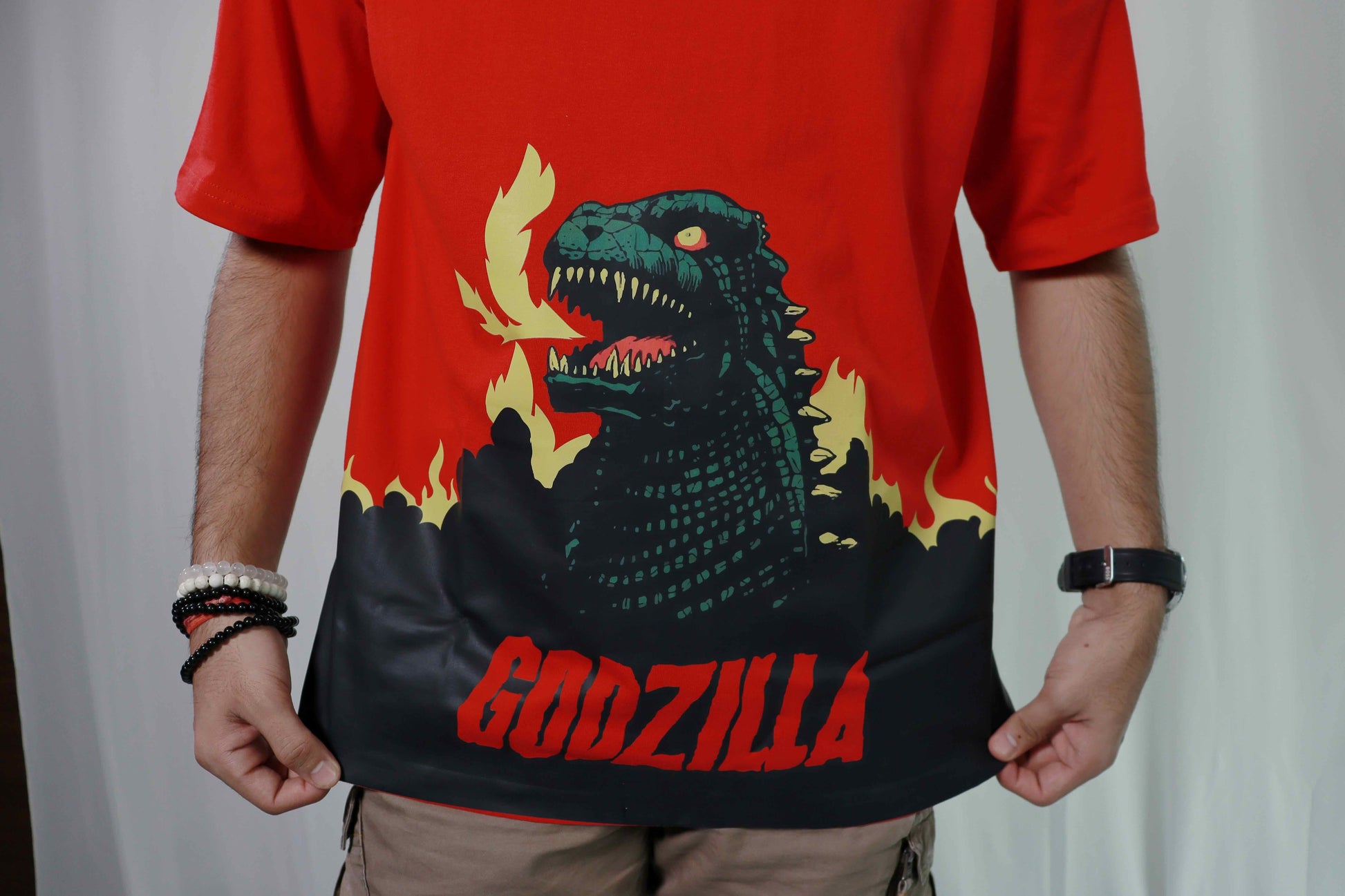 Make a bold statement with our oversized red T-shirt, showcasing epic Godzilla artwork. Perfect for unleashing your inner monster!