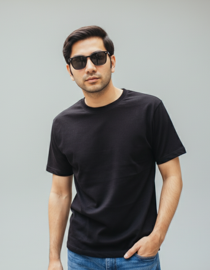 Elevate your everyday style with our classic black regular fit T-shirt. Versatile and timeless, this wardrobe staple is perfect for any occasion.